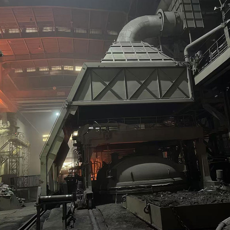 Przednia osłona wychwytująca konwertora ma zazwyczaj konstrukcję półzamkniętą lub ruchomą, co pozwala na dynamiczną koordynację z wylotem pieca konwertera, aby dostosować się do operacji przechylania konwertera. W praktyce okap zakrywa obszar wylotu pieca, tworząc stabilne środowisko podciśnienia dzięki połączeniu technologii nadmuchu i ssania. Pozwala to na dokładne wychwytywanie przejściowych gazów spalinowych o dużej objętości i wysokim stężeniu, zwłaszcza oparów zawierających żelazo rozpryskiwanych podczas ładowania żelaza. Ponadto, ponieważ temperatury gazów spalinowych z konwertora są niezwykle wysokie (chwilowo przekraczają 1400°C) i towarzyszy im rozpryskiwanie żużla żelaznego, okap wychwytujący jest wyłożony ogniotrwałymi odlewami i zawiera chłodzoną wodą strukturę międzywarstwową, aby zwiększyć jego odporność na promieniowanie cieplne i uderzenia mechaniczne, wydłużając w ten sposób jego żywotność.